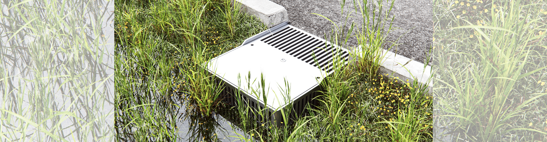Indløb på tre sider af ristens karm tillader vandet at løbe ind i risten og ned i brønd.